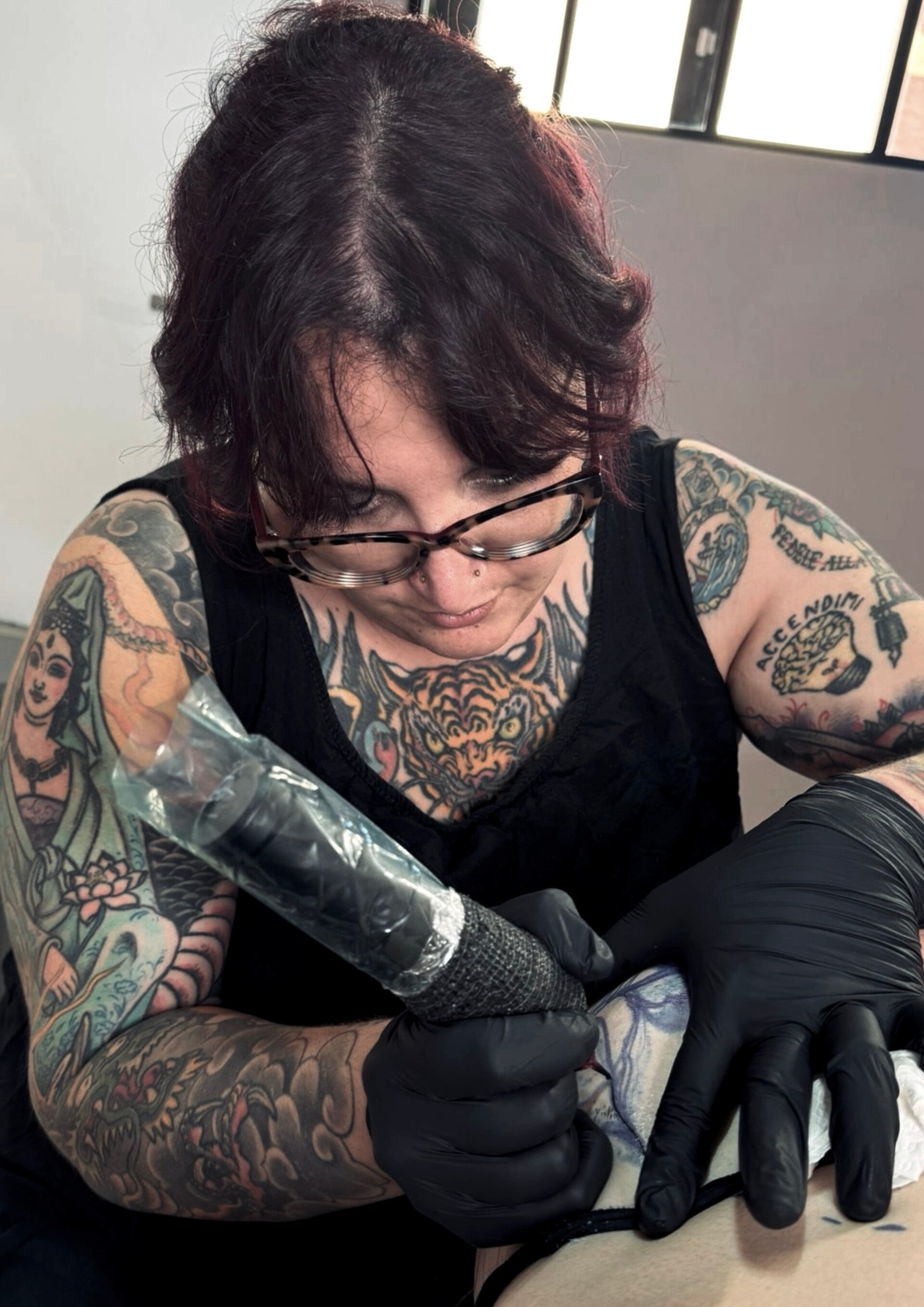 Martina Martella vanta circa 14 anni di esperienza nel mondo del tatuaggio, avendo viaggiato e collaborato con numerosi studi. Il suo stile è forte, d'impatto e profondamente simbolico, mirando a raccontare la vostra storia attraverso un linguaggio figurato. Esperta in neo-tradizionale, Martina pone al centro dei suoi tatuaggi la figura della donna, sia come musa ispiratrice che come simbolo di forza combattente. È in grado di rappresentare le vostre storie in modo armonioso con le linee del corpo, creando un valore aggiunto che va oltre la semplice estetica.